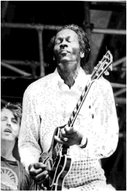 Des Henly on the road with Fumble The first time I met Chuck Berry was on a cold winters night in February 1973, in north London when he was topping the bill at the Rainbow Theatre (the old Finsbury Park Empire). Fumble were the opening act. We were all delighted to be playing with Chuck, a rock ‘n roll legend, and enjoyed our role as the band who played the first half of the show. After we’d finished we settled down to watch Chuck from the side of the stage. The first time I saw him, he was still backstage, having a discussion with Peter Bowyer, the promoter, and I sensed all was not right. Chuck had always had a reputation in the music business of being very awkward at times. This apparently dated back to his formative years in rock ‘n roll when he was exploited (as were many) by avaricious publishers and promoters, who were invariably white ! Chuck was now a legend and did things his way. I strained my ears to listen ! Ready for the stage with his guitar over his shoulder, he was asking for his concert fee before he took the stage. With minutes to go before the scheduled start, this unorthodox request clearly caused much consternation with the promoter. Given little choice however, I saw Peter reach for his cheque book, but it was obvious Chuck was still not happy. “No thank you man, I mean cash, I want cash !”. Peter looked worried before, but now he was panicking, and pleaded with Chuck to accept his cheque. At this point Chuck took his guitar off his shoulders and stepped towards his open guitar case as if to put it away. Peter realised Chuck meant it ! He sent his staff scurrying off in all directions to beg steal and borrow the necessary cash, from the box office till, from their own wallets, wherever it could be found. Miraculously, only running about ten minutes late, and with the 2,000 plus crowd becoming impatient for Chuck’s appearance the money was raised and given to the man. Oblivious to the impatient fans, he slowly counted every note, and when satisfied, he folded the notes and stuffed a wadge into each of his two front trouser pockets. Strapping his guitar back on his shoulder, I heard him say to Peter, with his best “show smile” “Well thank you man”. At this point he turned and walked onto the stage, to a tumultuous roar. “Hey Rainbow, I Love You” (another tumultuous roar). I will always remember seeing Chuck strutting around on the stage with his pockets bulging from the wadge of notes he was carrying. As always, he was brilliant, and I was glad to meet “the man”.